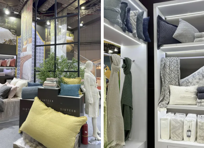 ![]() Siuteen展台陈列了四件套、枕头、毛巾、浴巾、家居装饰品等一系列以简约、优雅、精致为特点的产品,展现了品牌对家居美学的独特理解,更体现了品牌对舒适生活的执着追求。