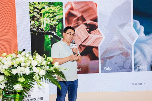 在“编织未来,以创新技术革新功能性纺织生产”论坛上,兰精集团全球技术开发经理陈振帆围绕兰精纤维创新与应用分享了兰精集团的循环经济模式与实践,从可持续发展战略、循环经济模式、关键技术与创新、重要合作项目、替代原料合作以及未来的循环经济愿景等维度探讨产品未来的升级方向。