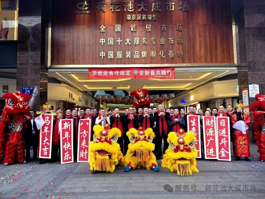金马昂首,春回大地。伴随着丙午马年奔腾向上的蓬勃朝气,成都荷花池大成市场于2026年2月26日(农历正月初十)早上8点08分正式鸣锣开市!作为中国西南部主要的服装流通枢纽,荷花池大成市场不仅是时尚潮流的汇聚地,更是无数商户抢占先机、财源广进的福地。
