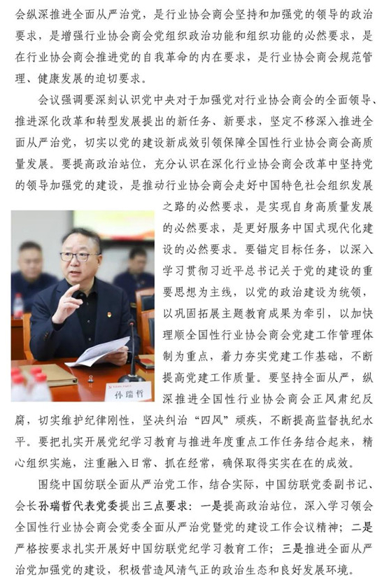 中国纺联传达学习全国性行业协会商会全面从严治党暨党的建设工作会议精神 研究部署党纪学习教育